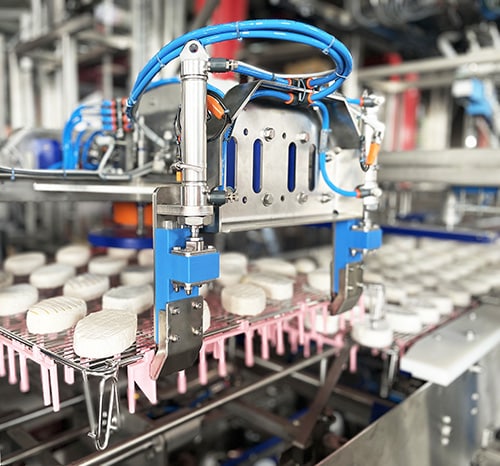 Pour répondre aux besoins d’acheminement de vos produits vers des systèmes de stérilisation, de pasteurisation, de stockage ou d’affinage, nous avons développé une solution robotisée d’Enclayage et Déclayage.