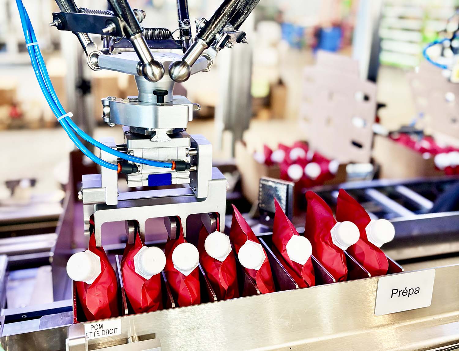 Notre machine s’adapte à une large variété de produits, tels que les barquettes, sachets, pots, bouteilles, et produits préalablement mis en étui. Grâce à un système de préhension sur mesure, développé en interne, chaque type de produit bénéficie d’une manipulation optimisée, garantissant efficacité et précision tout au long du procédé d’encartonnage automatique.