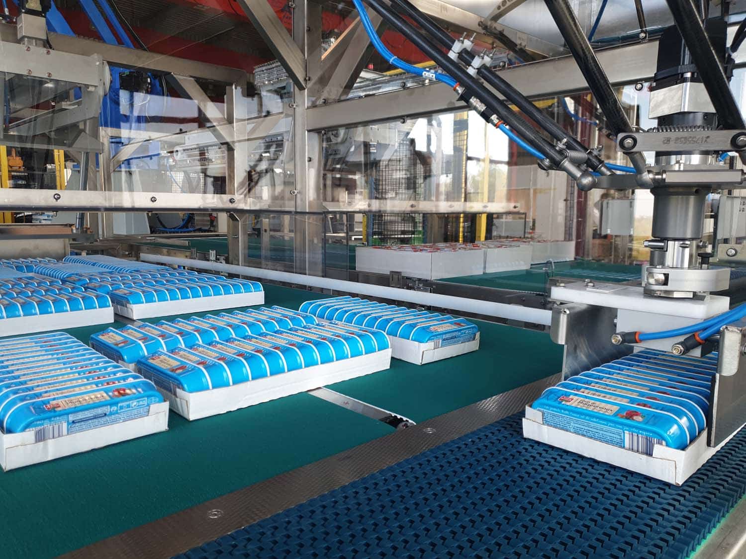 La prise des caisses ou des produits s’effectue selon vos besoins : à l’unité, à la rangée ou à la couche. Cette flexibilité permet d’adapter le procédé aux différentes cadences de production, garantissant efficacité et précision à chaque étape.